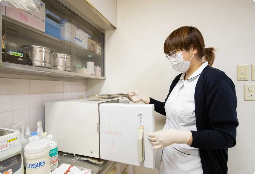 清潔で安全な診療環境を整えています治療器具の滅菌・消毒や感染症対策、こまめな清掃などを心がけており、清潔な状況で安心して治療を受けられる環境を整えています。