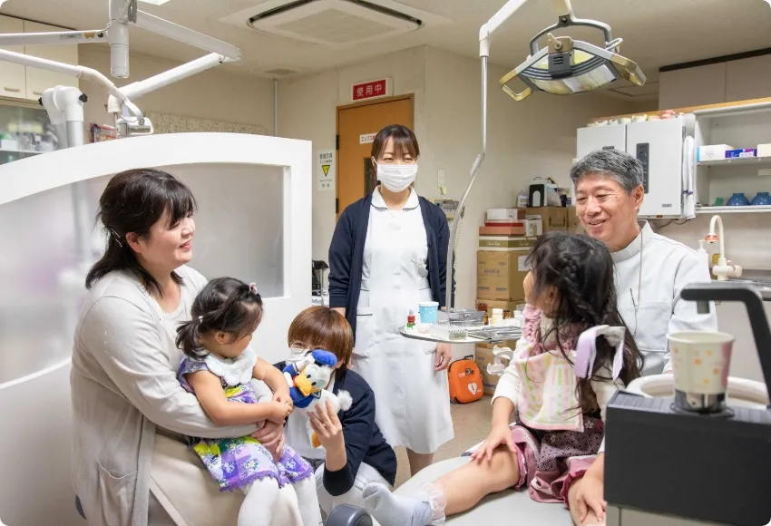 当院では、かかりつけ医としてお子様からご年配の方まで幅広く吹田市で診療を行っております。むし歯や歯周病の治療はもちろんのこと、ホワイトニングや審美治療、歯を失ってしまった方へ入れ歯治療などしっかりと患者様と話しご提案しております。